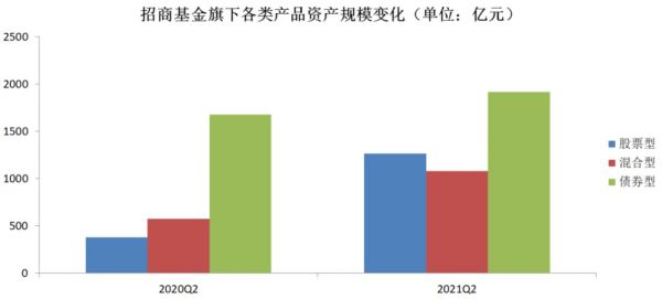 尽管短期内掌门人轮换,但并未影响公司的发展。王小青出任招商基金总经理的一年间,公司总资产规模从2020年二季度的4056.82亿元上升至2021年二季度的5753.82亿元,上涨了1697亿元。