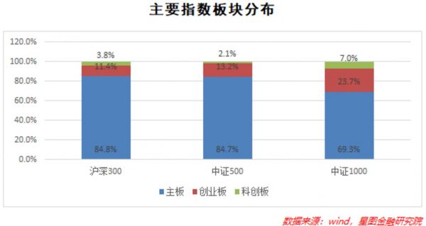 从板块覆盖情况看,中证1000涵盖的创业板和科创板成分股要远高于中证300和沪深300,科创含量更高,风险更大,相应的指数的波动也更大。