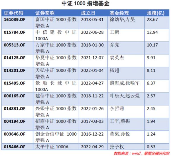 从目前市场中的中证1000指增基金来看,市场上第一只跟踪中证1000指数的指增型基金是创金合信中证1000增强A,成立于2016年12月22日,目前规模仅1亿元左右。