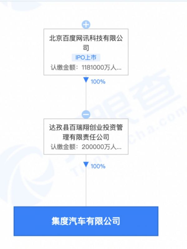 经派财经查看,截至发稿,天眼查APP数据显示,集度汽车的股权100%掌握在百度手中。