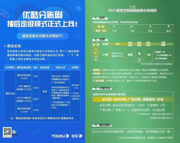 爱奇艺在2021年12月1日起推出了全新分账规则,平台将此前基于会员点击分账的会员分账收益判定转变为会员观看时长分账;优酷于今年1月17日正式上线了全新的“播后定级”模式;腾讯视频也在去年6月提出了以用户累计观看时长作为计费基础、提高分账比例、保底金额前置支付等三条新规。