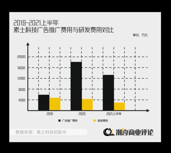 招股书显示,2019年至2021年上半年,素士科技的广告及市场推广费分别为6617.29万、1.85亿、1.33亿,占营业收入的比例分别为6.46%、13.54%和14.75%。其中,2020年的营销花费就已超过了当年的Pre-IPO轮融资金额。