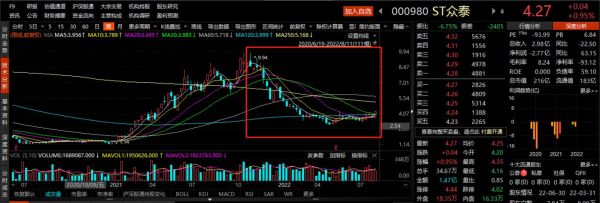 不过,钛媒体APP注意到,尽管ST众泰在财务数据上触目惊心,但其在资本市场上的表现却十分“疯狂”。据钛媒体APP统计,2021年,ST众泰涨停次数达87次,跌停次数达41次,区间振幅高达651.85%。
