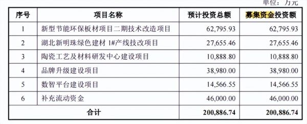 据招股说明书显示,新明珠集团本次拟募集资金约20.09亿元,与东鹏控股16.23亿元和蒙娜丽莎12.34亿元的首次募资金额相比,分别多出3.86亿元、7.75亿元。值得关注的是,新明珠集团在募资使用的6个方向中,“新型陶瓷产品”预计投资总额约9.05亿元,包括新型节能环保板材项目二期技术改造项目和湖北新明珠绿色建材1#产线技改项目,占比达45.03%,成为最大的投资方向。