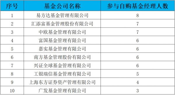 其中,易方达、汇添富、中欧三家公募基金旗下基金经理参与自购最为积极。