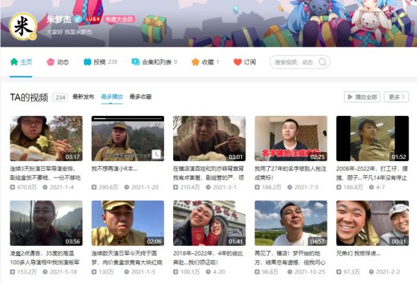 比如B站34万粉丝的“米梦杰”,就是靠吃盒饭的视频成名,热度最高的内容播放量近670万。