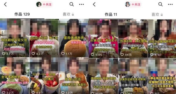 抖音粉丝超过50万的“云子团团”和她的姐妹团就是在这种模式下批量产出相似的内容。