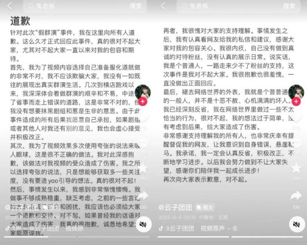 这是个很残酷的现实,多数横漂博主的粉丝量只有几百、几千,多一点的小几万,“云子团团”有50多万粉丝,靠造假在群演里也成为小有名气的网红了。