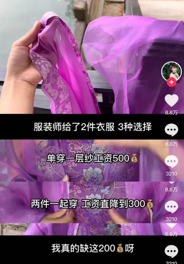 由于大部分情况没有真正进组,又不想穿帮,她们会对剧组做出失实宣传,比如某一次在视频里提到扮演青楼女子,被剧组开出了衣服穿得越少、工资就会越高的条件。