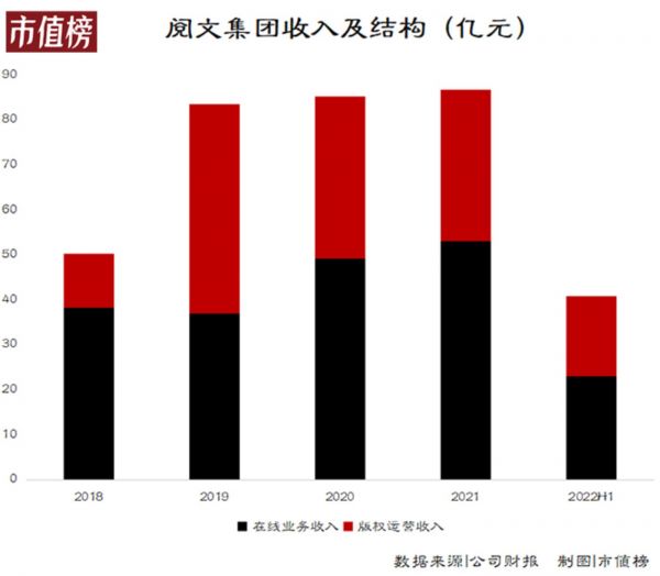 阅文收入下滑主要来自在线业务收入下降,2022上半年,阅文在线收入23亿元,同比下降9.17%。
