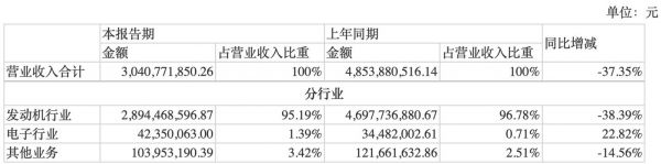 但即便如此,发动机业务仍是公司主要收入来源,今年上半年,公司发动机相关业务贡献收入28.94亿元,占比95.19%。