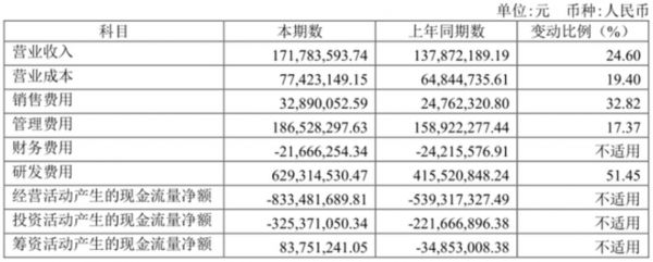 近日,寒武纪公布了2022年上半年财报。数据显示,2022年上半年,公司实现营业收入1.72亿元,同比增长24.6%;实现净利润-6.22亿元,上年同期为-3.92亿元,亏损金额较上年同期扩大58.94%;经营活动产生的现金流量净额为-8.33亿元,上年同期为-5.39亿元。