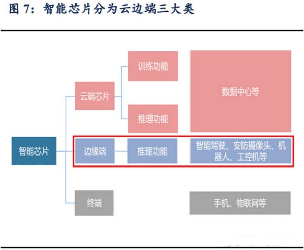 从概念上看,AI芯片可以分为云端处理器、边缘端处理器和终端处理器三大类。其中,云端芯片主要应用于政府、企业数据中心的服务器中;边缘AI芯片产品主要部署于智能驾驶、安防摄像头等领域;终端芯片主要应用于手机等移动终端。