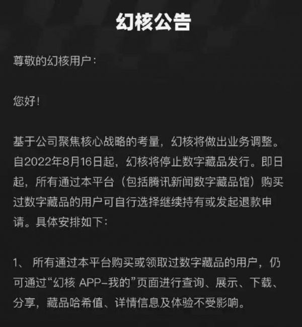 ▲图:幻核关停公告