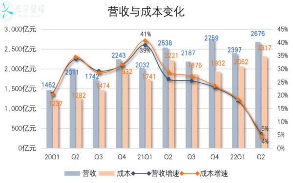 8月23日,京东集团公布2022Q2报表,数据显示,该季度实现营收2676亿元,相比去年同期增长5%。受疫情影响,京东整体成本维持上升趋势,同比增长4%。由于本季度对业务进行了相当比例的优化,成本得到控制。