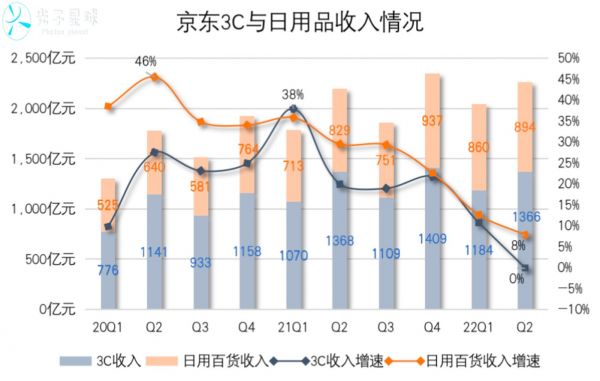 高端产品无法在短时间提振日用消费品,另一边京东传统强项3C品类却保持了很强韧性,这既有618大促的因素,同时夏季高温还提振了空调这类大家电的需求。