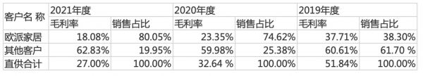 2021年公司直供其他客户的产品毛利率为62.83%,而直供欧派家居的产品毛利率仅18.08%,较2020年的23.35%进一步下降,与其他客户差别巨大。此外,2021年仅对欧派家居的应收账款就有3559.22万元,占应收账款余额的55.79%。(本文首发钛媒体APP,作者/翟碧月 )
