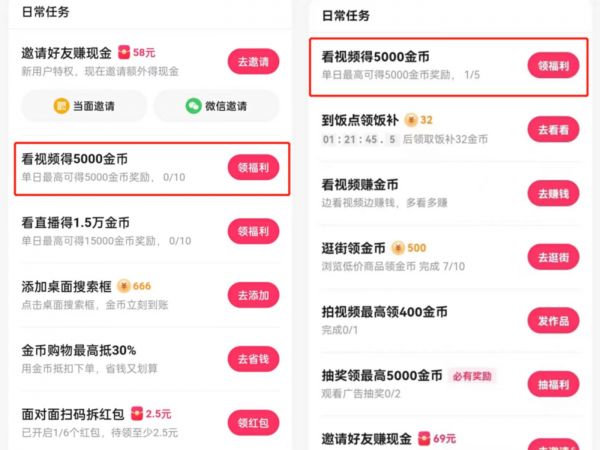“感觉快手极速版现在给的越来越少了。”已是花甲之年的李慧(化名)向数科社展示了她的“赚零花钱”日常,数科社发现同样是日常任务,老用户的任务广告次数单日只有五次,每次奖励只有10到几十金币,而新用户每次奖励在上百金币左右。