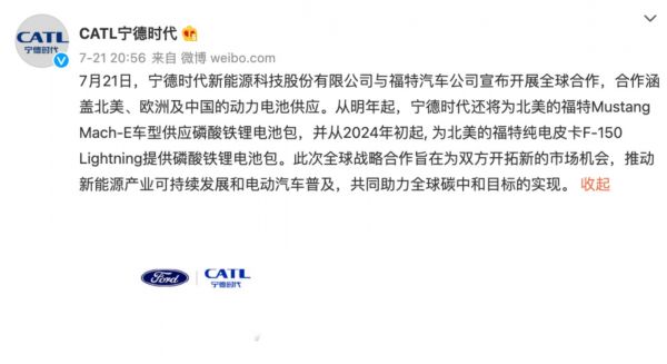 另一方面,在续航里程竞赛进入到白热化阶段时,车企希望与供应商一起来合作研发、合资建厂,让其产品力形成独特的差异化。但作为动力电池领域的巨头,宁德时代也分身乏术,不可能充分满足每一家合作车企所提出来的需求。