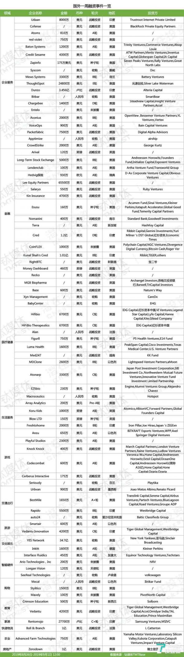 第32周收录125起投融资事件|国内投融资事件仅占国外1/6,国外企服、医疗健康投资继续领跑 | 潜在周报