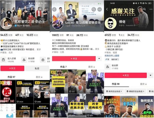 这其中,很多餐饮连锁品牌创始人都大显身手、亲身一线。在抖音等平台进行餐饮行业干货分享、前景展望的相关直播,没有架子,很接地气。你可以看到宴遇CEO“傅佬”、令狐冲创始人“骚哥谈餐饮”、虾小士创始人“孔硕餐饮之道·虾小士”……很多餐饮老板通过短视频平台打造个人IP、品牌IP,构建专业形象与信任关系。