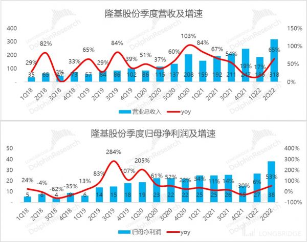 a. 由于需求旺盛,组件和硅片涨价,二季度公司收入 318 亿,同比增长从一季度的 17% 直线拉高到了 65%。