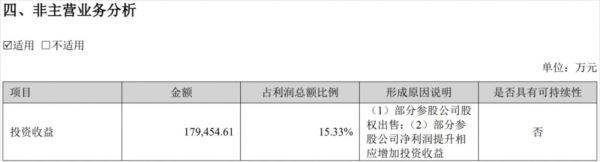 据半年报披露,宁德时代计入当期损益的政府补助达到10亿元。与此同时,其投资收益为17.95亿元,占利润总额比例15.33%。