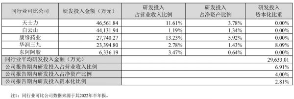 (以岭药业与同行研发投入对比,来源:中报)