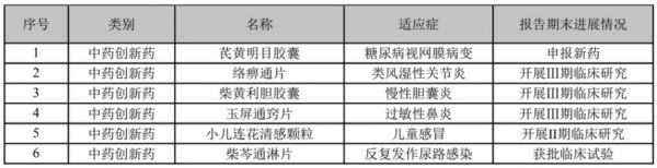 (以岭药业代表性创新中药研发进展,来源:中报)