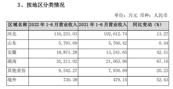 从产品档次来看,上半年业绩增长主要源于高档酒、中档酒的发力,报告期内高档酒、中档酒营收分别为9.67亿、4.73亿,分别增长30.14%、20.99%,低档酒营收4.23亿,同比增加12.36%。具体来看,老白干本部收入9.68亿元,同比增长7%;文王事业部收入2.14亿元,同比增长60%;板城事业部收入3.05亿元,同比增长45%;武陵事业部收入3.55亿元,同比增长68%,孔府家事业部收入0.66亿元,同比持平。从区域来看,河北、湖南、安徽区域对营收的贡献排名前三,营收分别为11.62亿、3.52亿、1.89亿,湖南区域营收增长最快,同比增长67.16%,安徽区域次之,同比增长42.51%。