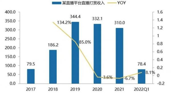 这是一个短视频平台做的该平台直播打赏的统计,疫情三年,直播打赏有了一个爆发式的增长,而且三年时间基本维持稳定。