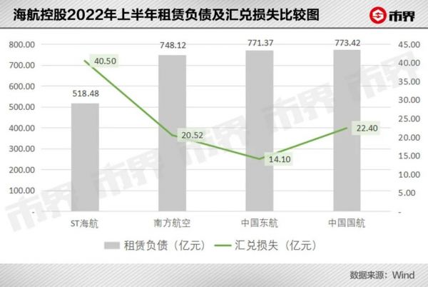横向比较来看,2022年6月末与海航518亿元租赁负债有可比性的南航、国航和东航,分别有748亿元至773亿元不等的租赁负债(汇兑损失重要来源),而三家航司同期的汇兑损失规模均大幅度小于海航。