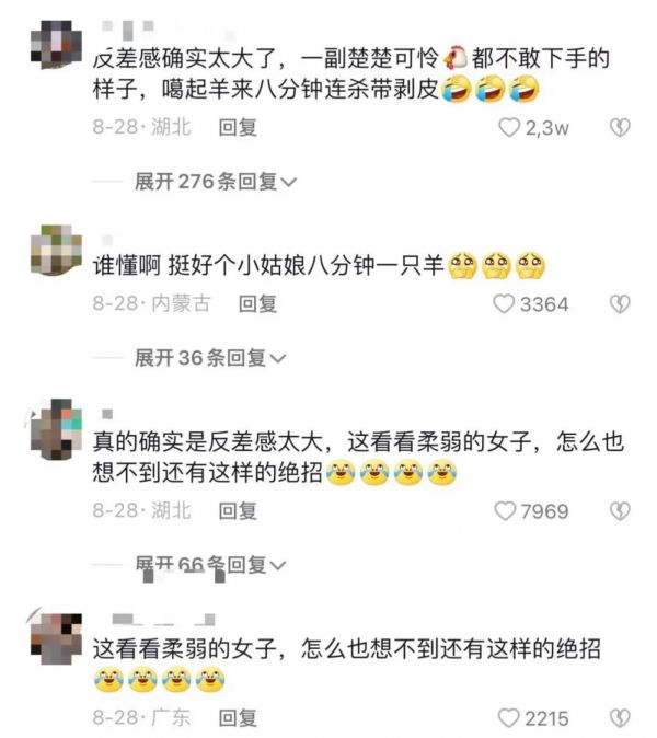 “别被她的外表骗了,她8分钟噶一只羊。”