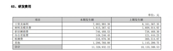 张小泉研发费用构成,截取半年报