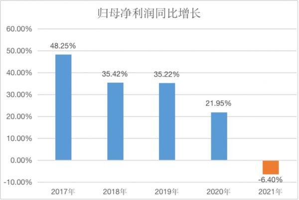 这导致康师傅2021年整体毛利润仅有0.35%的微涨,而毛利率则同比下滑2.78个百分点,股东应占溢利同比下滑6.39%,归母净利润同比增长为负的6.4%,这是康师傅2015年以来首次出现年度净利润同比下滑。
