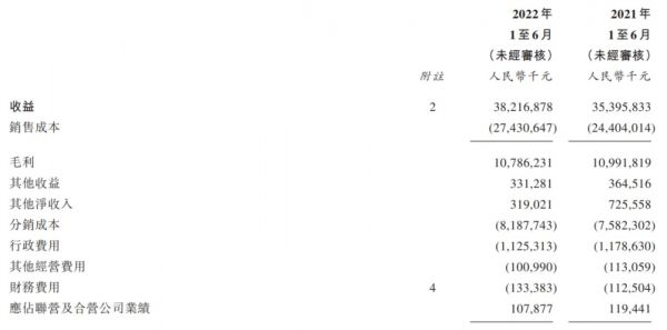 财报显示,2022年上半年的销售成本同比上扬了12.4%,其中分销成本高达81.88亿元,同比增长7.98%;财务费用也较去年同期上涨了17.7%。