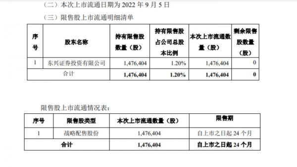 限售股流通明细,截取固德威公告