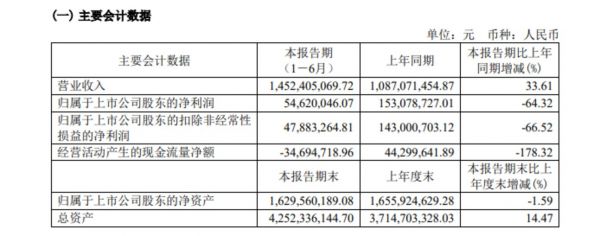 固德威中报主要会计数据,截取半年报