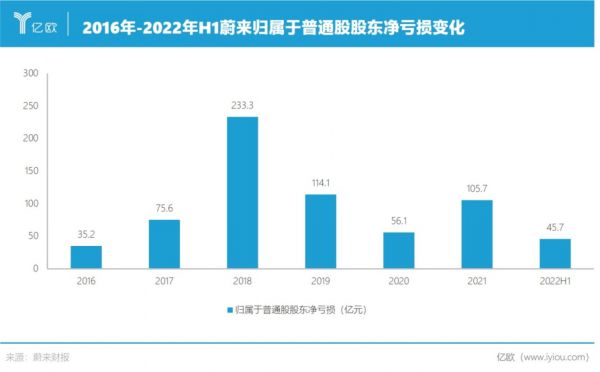 自2016年到2022年上半年,蔚来归属普通股股东的净亏损累计达约666亿元。