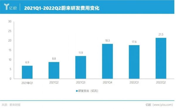 蔚来透露,研发等费用的增加、车辆销售成本上升是其二季度亏损扩大的主要原因。其中,二季度研发支出同比增长133.9%,至21.5亿元。