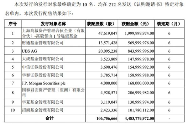 就在7月29日,复星医药A股公告完成新一轮定增,公司以42元的价格发行近1.07亿股,发行对象共10名,募集资金净额44.56亿元,股份限售期为6个月。