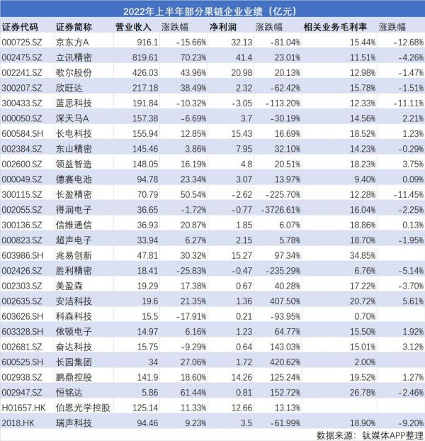 钛媒体APP注意到,去年以来,果链企业的毛利率就出现了下滑的势头,今年上半年表现的更为明显。