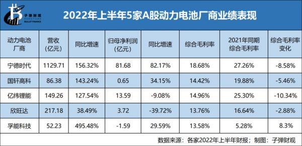 相比之下,同在A股上市的动力电池厂商国轩高科、亿纬锂能、欣旺达以及孚能科技的业绩则明显逊色很多。