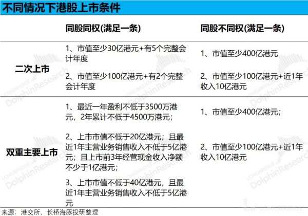 但是实际情况也并非如此严峻,根据港交所的上市要求(下图),在海豚覆盖的标的中,除叮咚买菜之外,其他所有公司都满足在香港双重主要上市的条件。