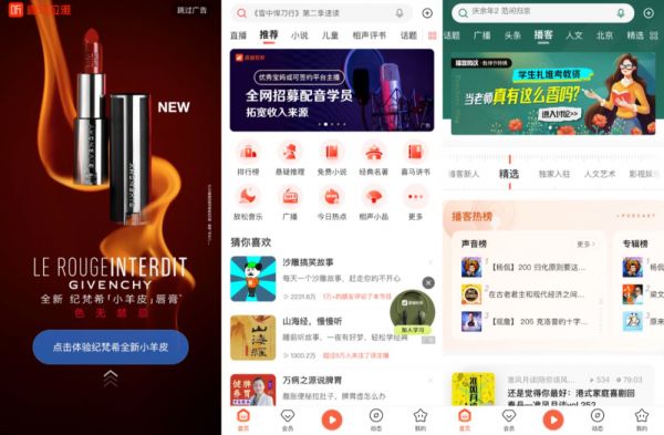 据《晚点 LatePost》的报道,喜马拉雅仅有不到3%的广告收入是关闭屏幕后的音频内广告。作为一家主打音频产品的平台,喜马拉雅50%广告收入来自打开应用时出现的开屏广告。