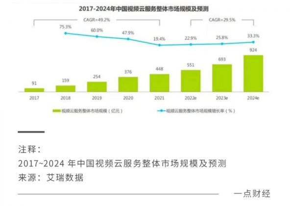 在此形势下,视频云无疑是条合适的增长赛道。本身,内容视频化已经是大势所趋,而且这也是快手熟悉的领域。另外,这还是块庞大的蛋糕。根据艾瑞数据,2021年中国视频云服务整体市场规模达到448亿元,预计未来三年的年复合增长率为29.5%。