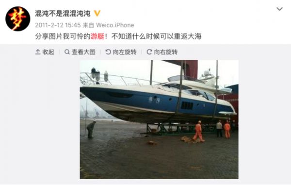 这艘游艇多次出现在葛卫东的微博。他还与人一起创立了司南杯大帆船赛,2013年曾以颁奖嘉宾的身份,出现在三亚“海天盛筵”亚洲游艇颁奖典礼的现场。