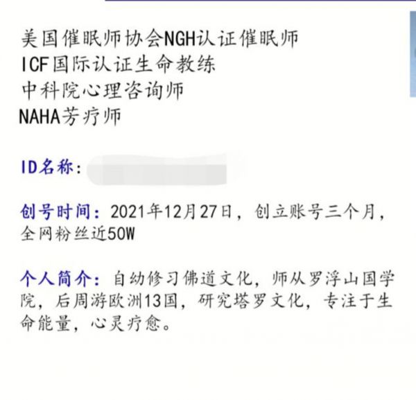 并且,通常这些讲师都会被挂上美国催眠师协会NGH认证催眠师、ICF国际认证生命教练、CTRA华人塔罗协会认证塔罗师等一系列头衔。