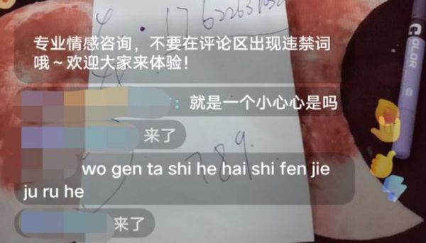 并且博主们还需要不断提醒受众,“不要在直播间说算命、塔罗等违禁词”,而想要测算的问题也“需要用拼音打出来”,才能降低被抖音审核机制追捕的可能。