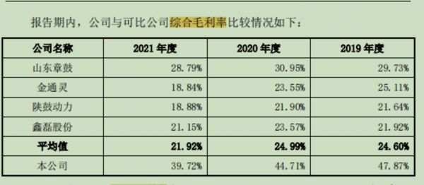 可比公司毛利率水平情况表,截取招股书